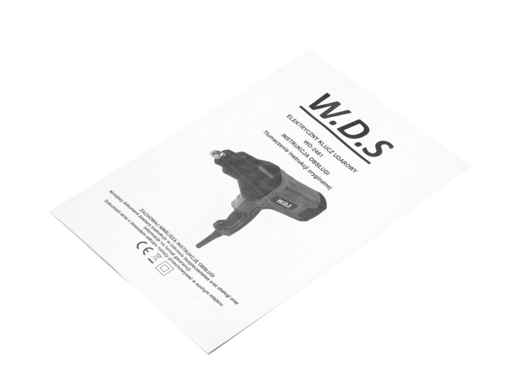 A W.D.S márkájú elektromos ütőcsavarozó, a WDS2461 modell, egy modern dizájnú készülék, amelyet a magas tartósság, a minőség és a megbízhatóság jellemzi.