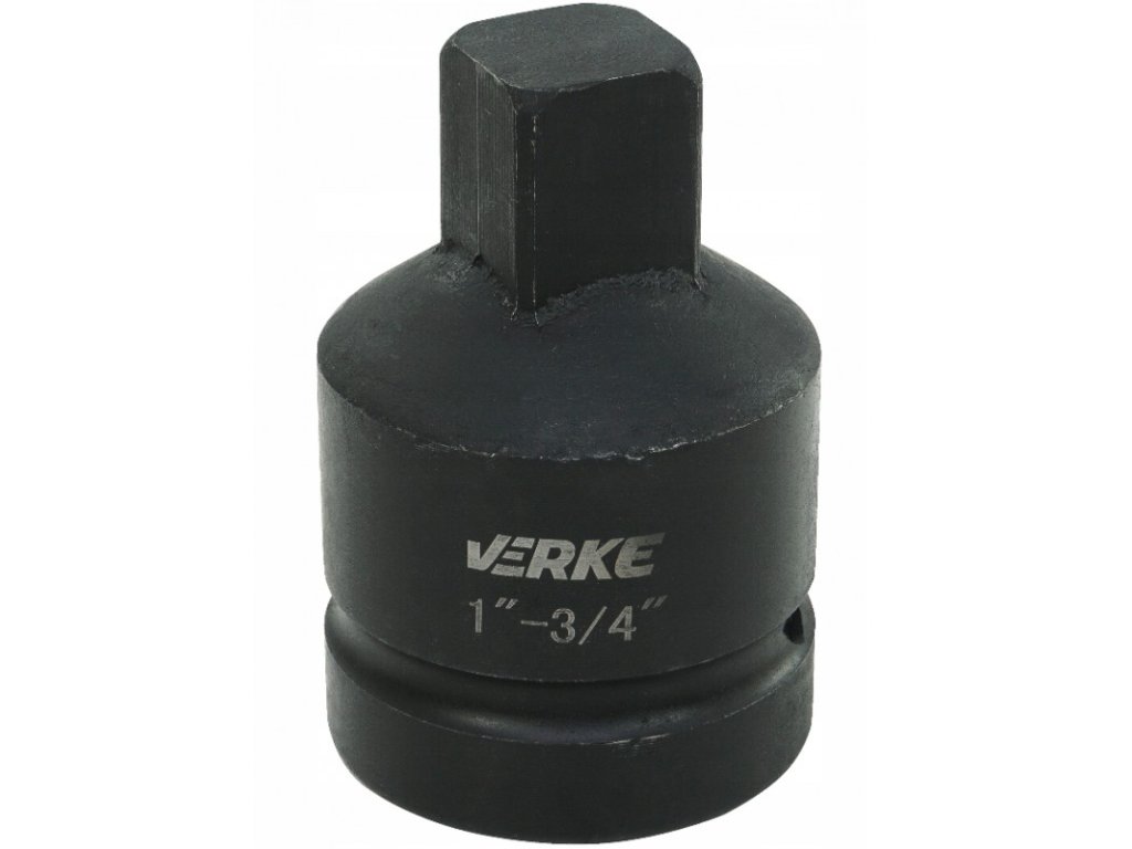 Speciális redukciós adapter az ütvecsavarozó eszközökhöz, a VERKE márkától, amely lehetővé teszi a meghajtó szabvány 1"-ról 3/4"-ra történő átalakítását. Kompatibilis pneumatikus berendezésekkel, amelyek nehéz körülmények között és változó terhelés mellett működnek a professzionális szervizelés során. Az adapter a legmagasabb minőségű acélból készült, kovácsolt és edzett, ami garantálja a hosszú élettartamot. Ezek a tulajdonságok biztosítják, hogy a VERKE redukció megőrzi névleges méretét és nem reped meg ütközési működés közben.
