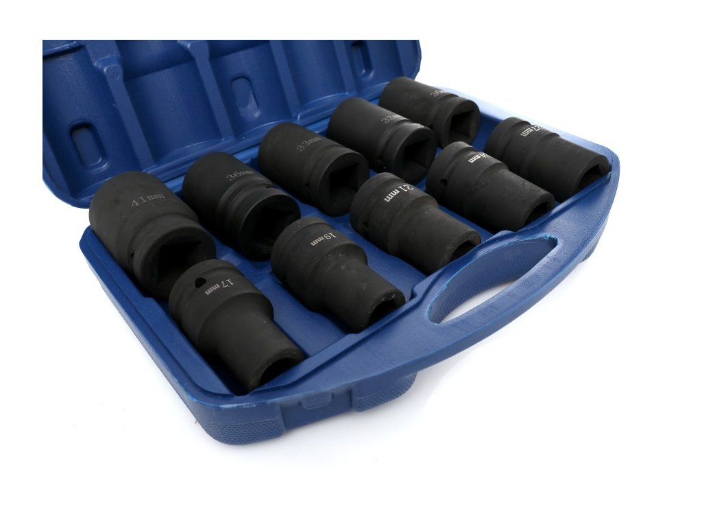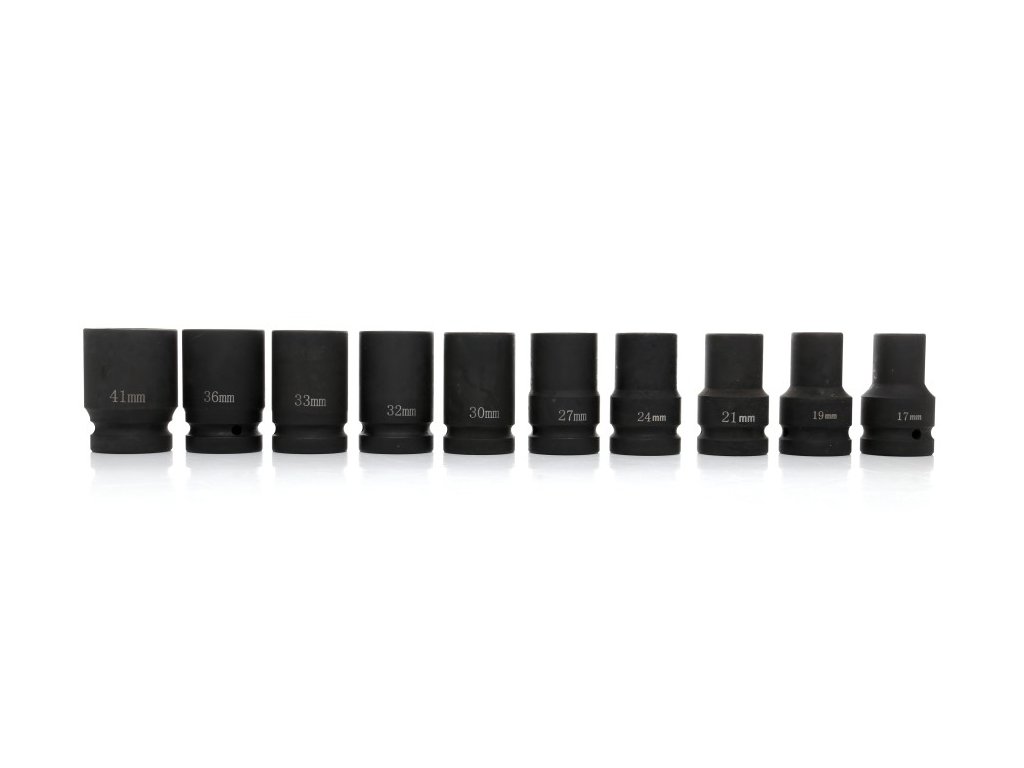A hatszögletű ütvecsavarozó dugókulcsok professzionális készlete 1" mérettel és 17-41 mm-es tartománnyal rendelkezik, és pneumatikus valamint elektromos szerszámokkal használható. Ez a készlet lehetővé teszi a hatékony csavarást, meghúzást és csavarollást nagy erővel, ami ideálissá teszi autószerelők számára.