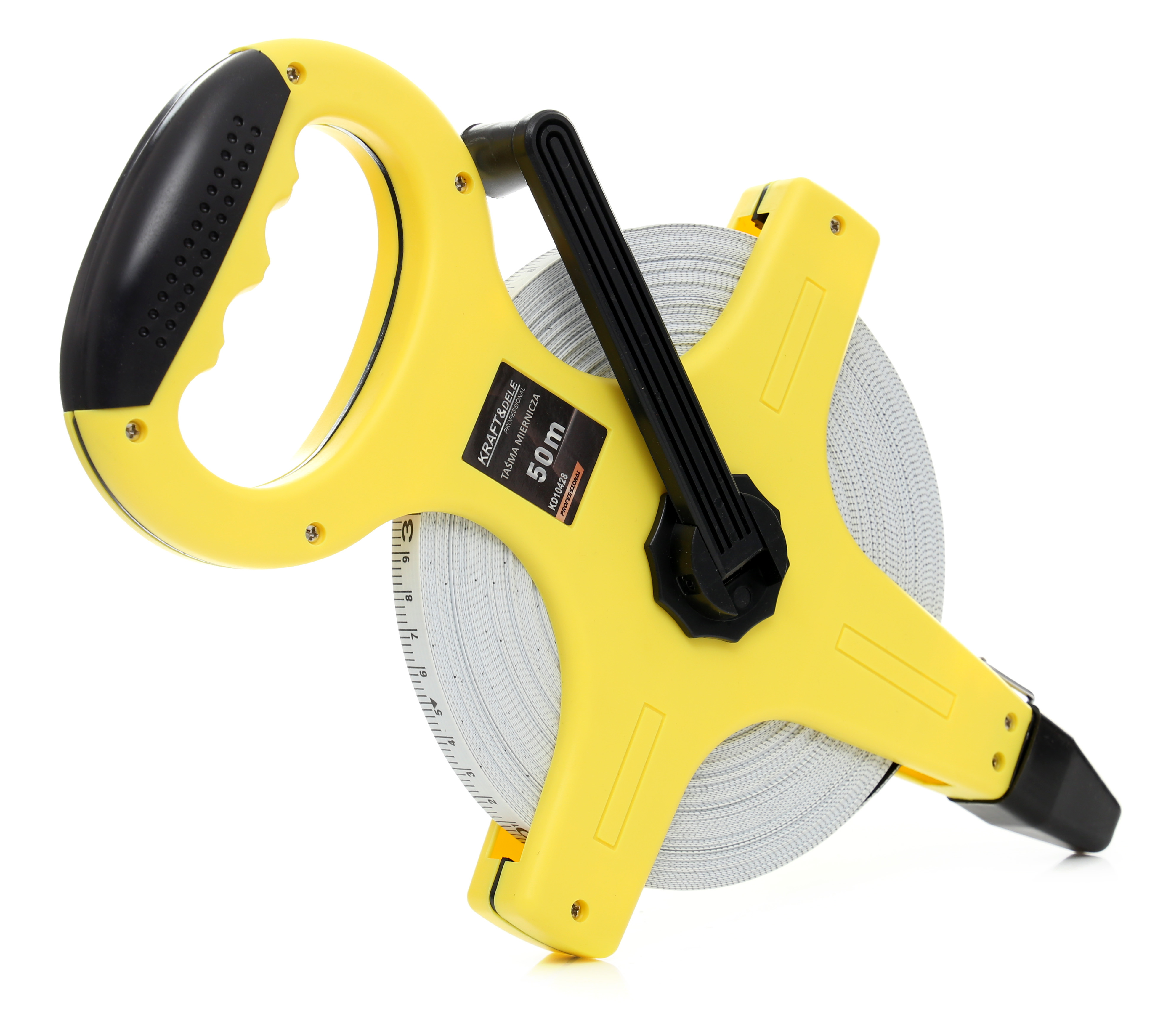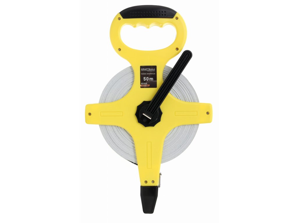 Professzionális üvegszálas mérőszalag a Kraft&Dele márkától. Az üvegszálból készült vége, amely földbe ütésre tervezve segíti a pontos mérést, hosszú élettartamú. Egy személyes használat esetén is hasznos a szalag végén található rögzítő zsinór. A munka ergonómiáját a kényelmes markolat és a zökkenőmentesen működő tekerődob biztosítja.