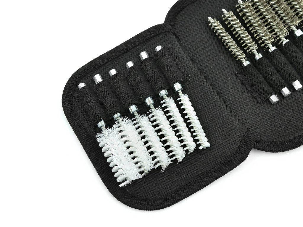 - Tartalmaz 18 különböző keménységű és átmérőjű kefét