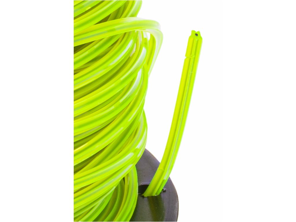 Az ötszögletű forma magasabb tartósságot biztosít nagyon magas fordulatszámon, miközben éles élét biztosít, amely a standard lekerekített szálakból hiányzik. Az éles élek hatékonyabban vágják a füvet vagy a puha bokrokat.