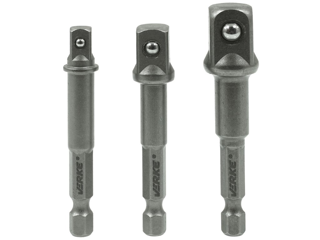 A 3 készlet hatszögletű adapter a dugókulcsokhoz, tartós acélból készült, fekete bevonattal.