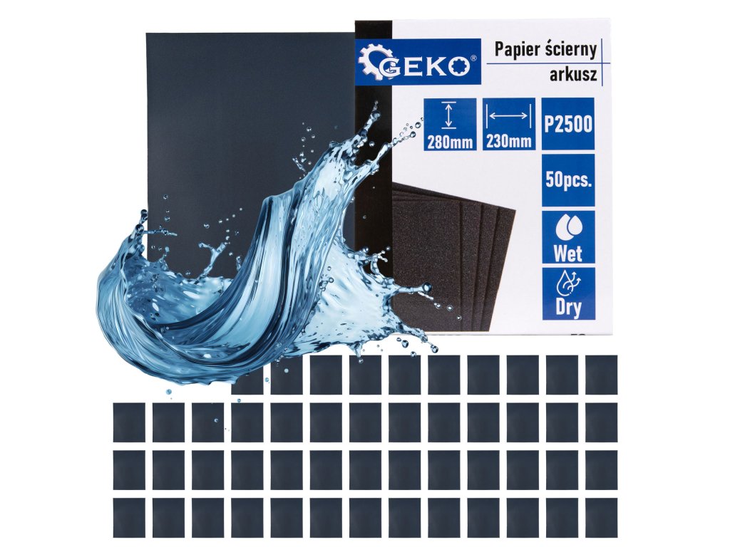 Vízálló csiszolópapír 230x280 mm mérettel és P2500 szemcsemérettel van tervezve, hogy kiváló eredményeket nyújtson különböző felületek megmunkálásakor, legyen szó száraz vagy nedves használatról.