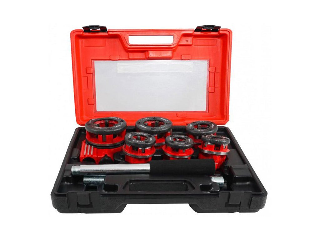 Magas minőségű csőmenetvágó szett. A szett tartalmaz egy kézi menetvágót racsnival, ami jelentősen megkönnyíti a munkát, és egy irányváltó kapcsolót. A készlet 6 különböző méretű, cserélhető vágófejet tartalmaz. A fejlettek nagyon ellenálló és tartós anyagból készültek.