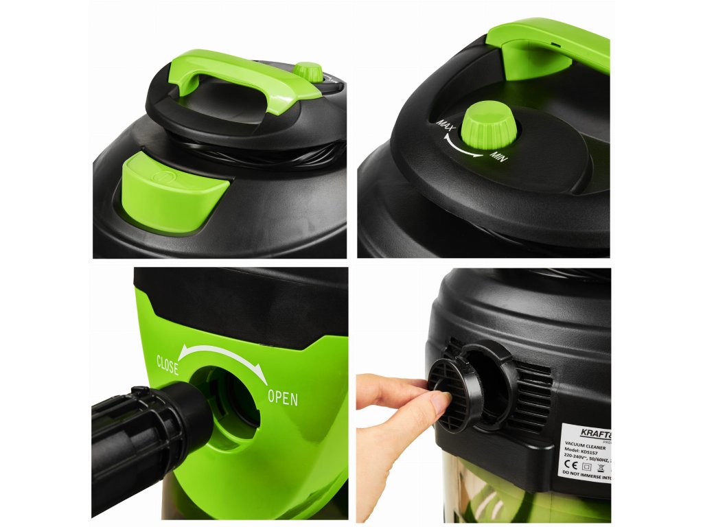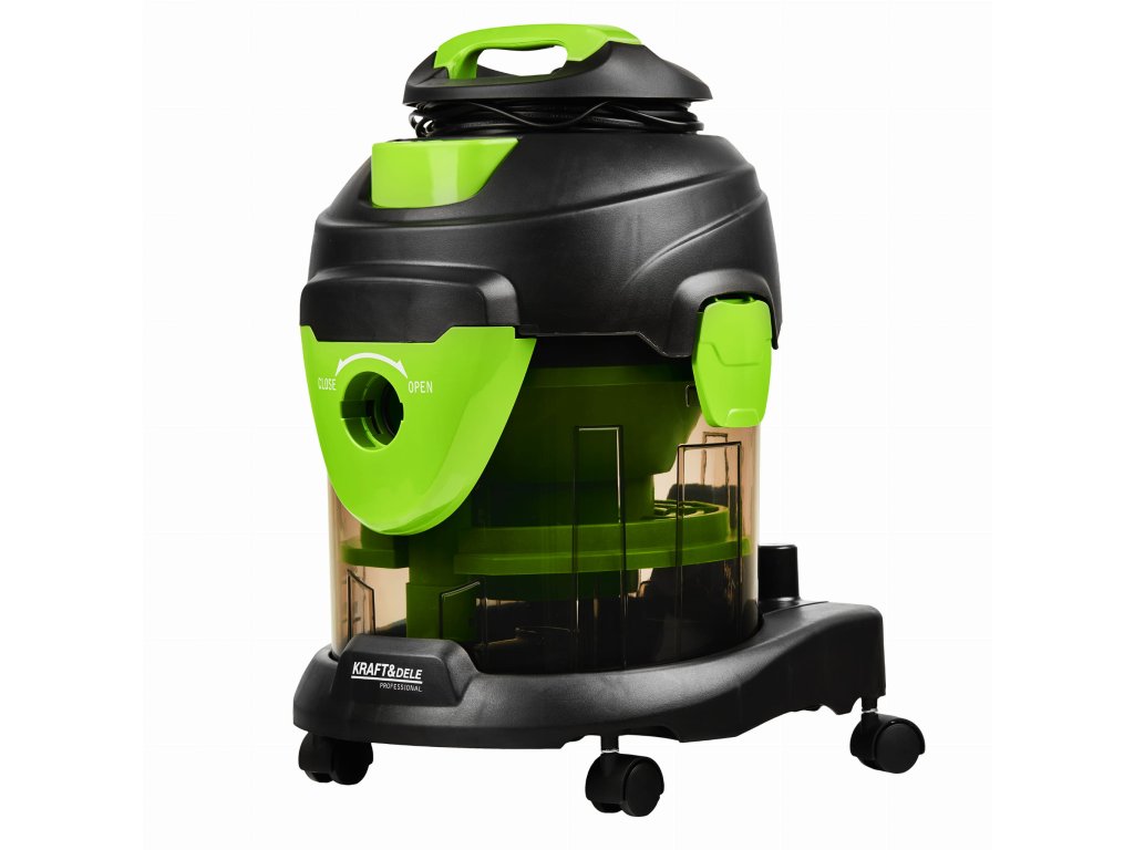 A Kraft&Dele márkájú, vízszűrős elektromos porszívó a törmelék és a nedves kiömlött folyadékok felszívására tökéletes.