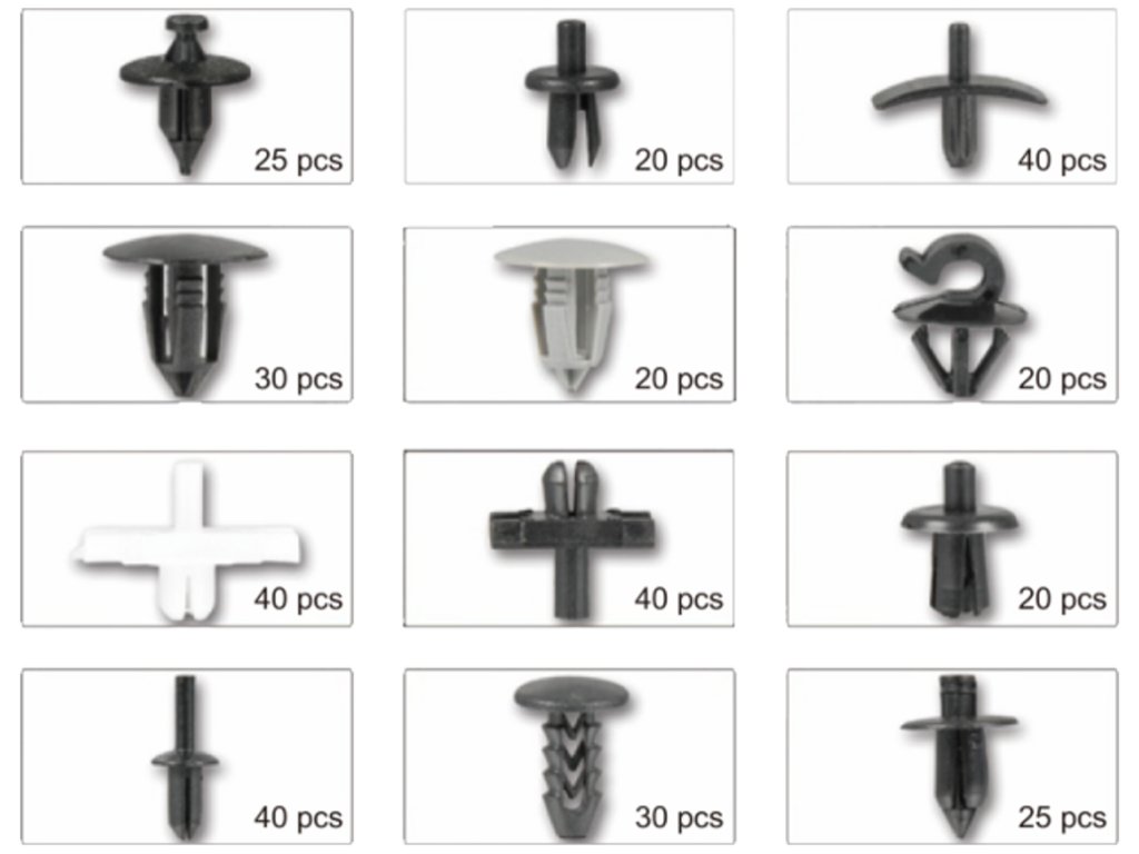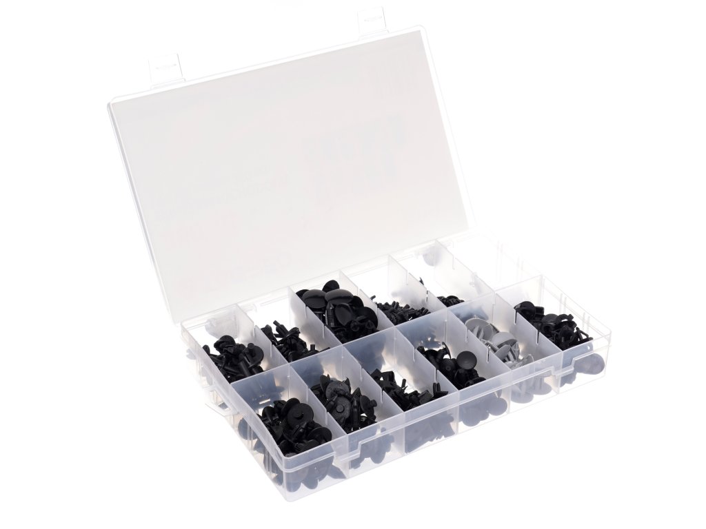 Mindezek a kapcsok praktikus dobozban vannak elhelyezve, amely kényelmes rekeszekkel rendelkezik, megkönnyítve a komponensek szervezését és hozzáférését. Így időt és energiát spórolhat meg a megfelelő klipsz keresése során.