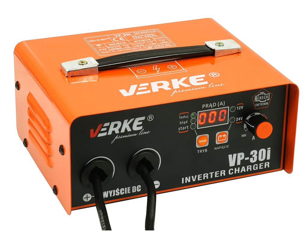 A VP-30I Verke Premium Line Invertáló Indító Töltő egy olyan eszköz, amely különböző típusú ólompáka akkumulátorok töltésére alkalmas: WET - folyékony elektrolitot tartalmazó, GEL - gél elektrolitot tartalmazó, AGM - abszorpciós töltőszőnyeggel ellátott. Ezen felül az eszköz támogatja a belső égésű motorok indítását. A töltő átalakítja az elektromos hálózatban jelenlévő áramot és feszültséget olyan értékekre, amelyek lehetővé teszik az akkumulátor biztonságos töltését. A töltés révén könnyebbé válik az akkumulátor megfelelő működésének biztosítása, ami jelentősen meghosszabbítja az akkumulátor élettartamát.