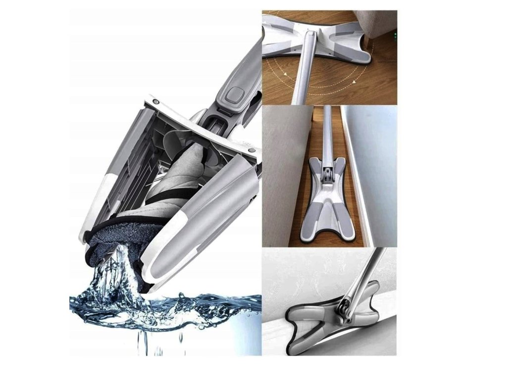 ✅ X-típusú automatikus centrifugálási funkció — nincs több piszkos kéz! Egyetlen mozdulat aktiválja a centrifugálási mechanizmust, amely hatékonyan eltávolítja a felesleges vizet és szennyeződéseket a felmosófejből.