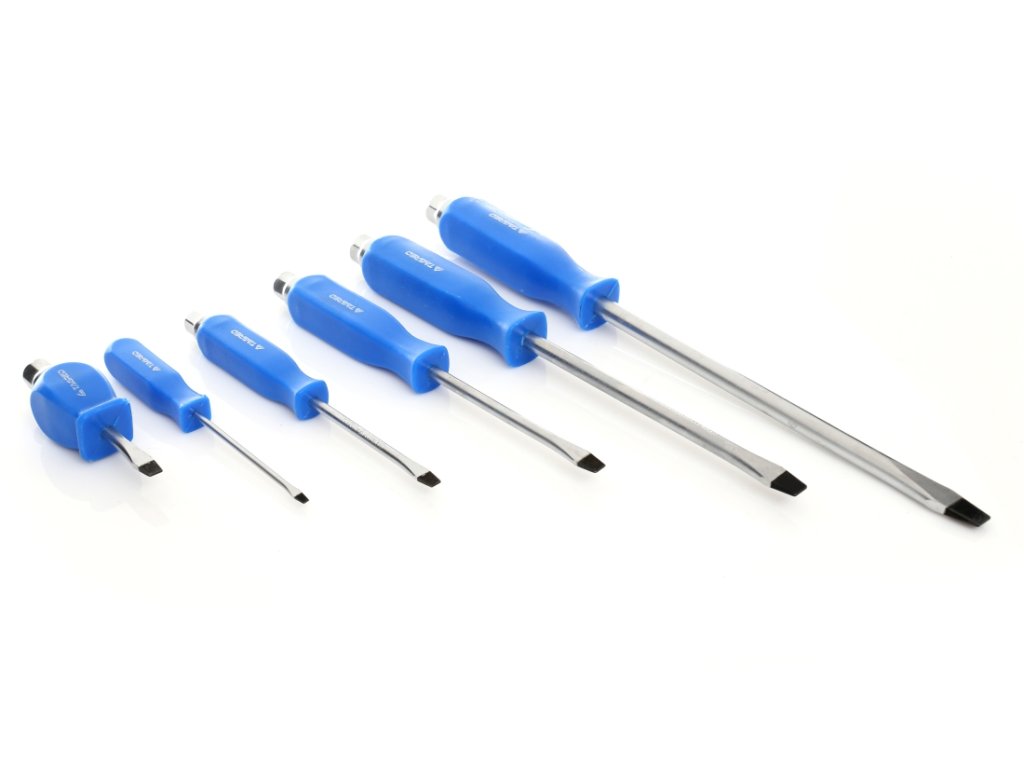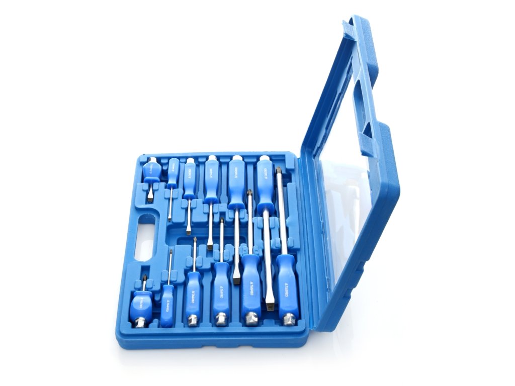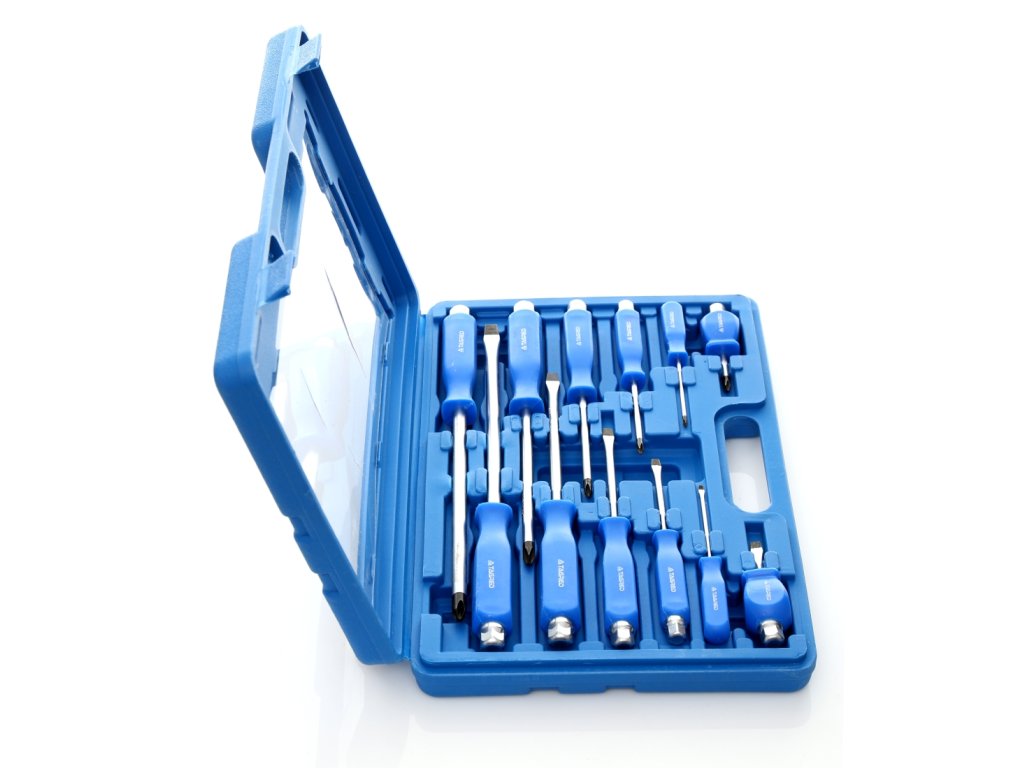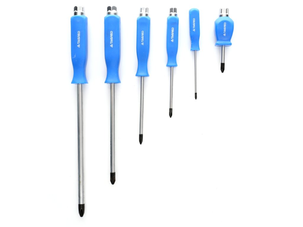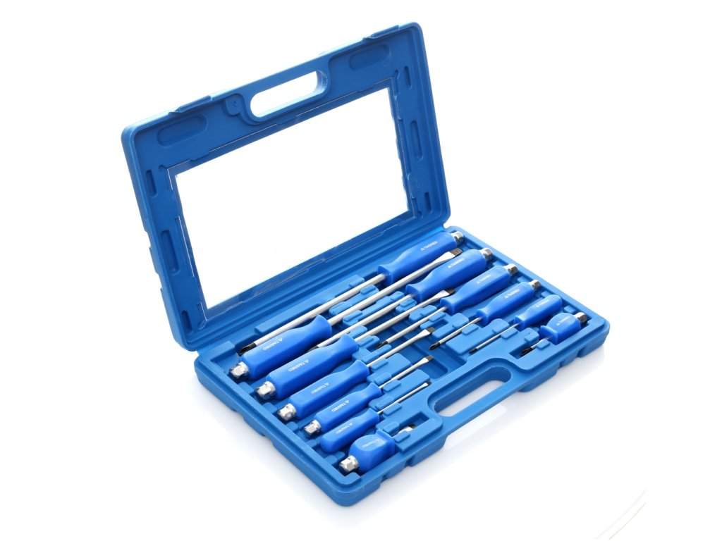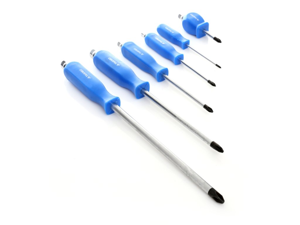 - A csavarhúzók markolatai ergonomikus kialakításúak, gumi kiemelkedésekkel bevonva, amelyek jobb fogást biztosítanak.